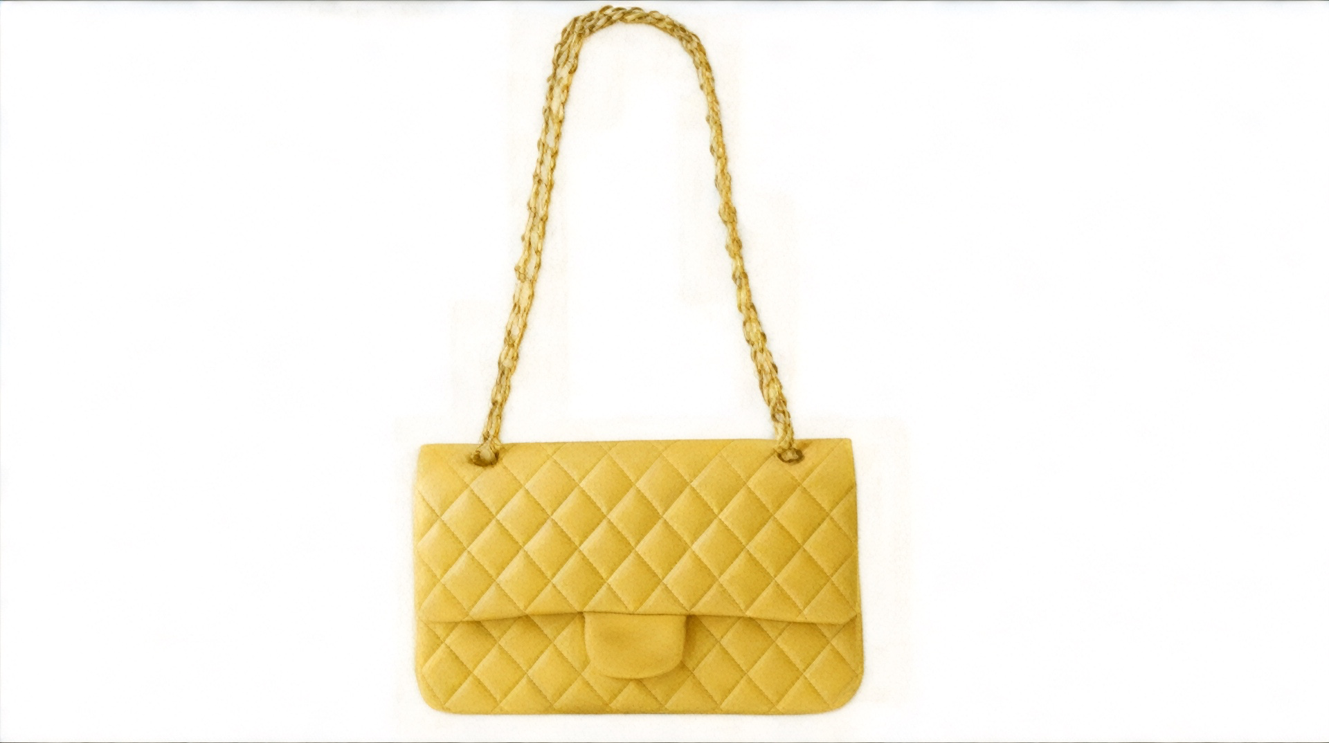 香家羊皮菱格链条包中号-姜黄色-金