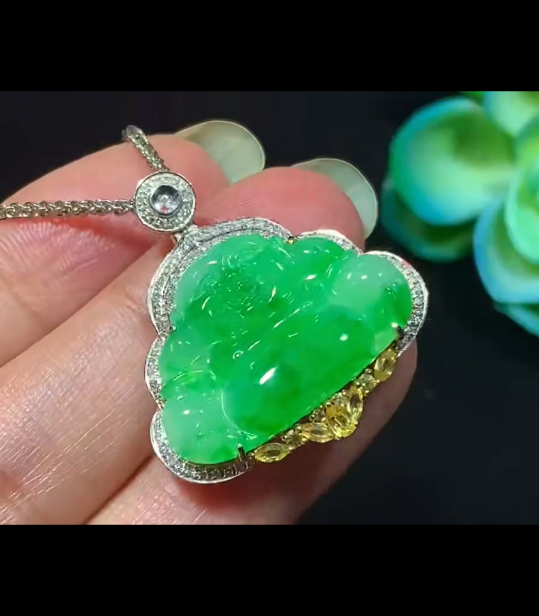 Experience the delicate beauty and profound meaning of our 18k Platinum Diamond Jade Buddha Pendant