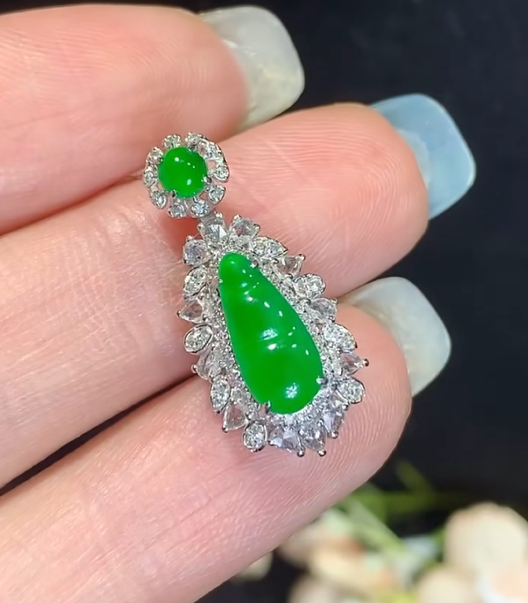 18K Platinum Full Diamonds Icy Jadeite Pendant (Wood and Earth)